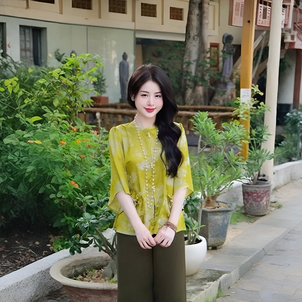 Set Pháp Phục Túi Tiền Xanh Cốm là trang phục truyền thống dành cho Phật tử nữ, mang sắc xanh cốm dịu nhẹ, tượng trưng cho sự thanh mát, an yên và hòa hợp. Bộ pháp phục được may theo dáng truyền thống, gồm áo dài tay và quần suông rộng rãi, kết hợp túi tiền tiện dụng. Chất liệu vải mềm mại, thoáng khí, giúp người mặc cảm thấy thoải mái trong các hoạt động lễ chùa, thiền định hay khóa tu. Đây là lựa chọn phù hợp cho những ai muốn thể hiện sự trang nghiêm, giản dị nhưng vẫn thanh lịch trong phong cách Phật giáo.