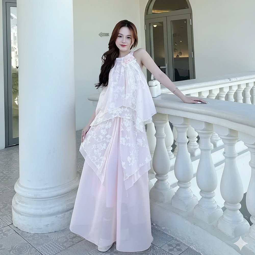 Set Yếm Ren Hoa Hồng mang vẻ đẹp thanh lịch và nữ tính, nổi bật với chất liệu ren mềm mại. Thiết kế cổ yếm tinh tế kết hợp họa tiết hoa nhẹ nhàng tạo điểm nhấn duyên dáng. Màu hồng trang nhã tôn lên làn da và phù hợp với nhiều dịp như tiệc ngoài trời, dạo phố hay chụp ảnh nghệ thuật. Bộ trang phục lý tưởng cho những ai yêu phong cách bay bổng và dịu dàng