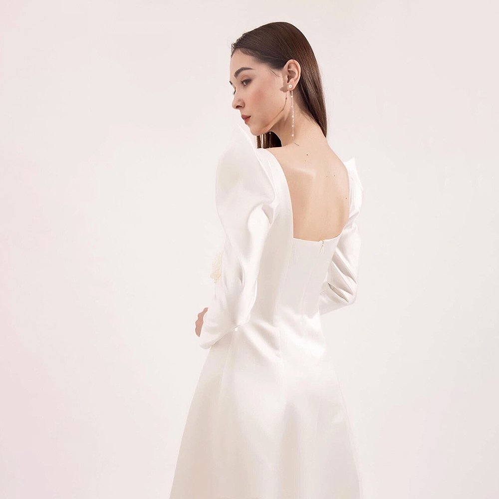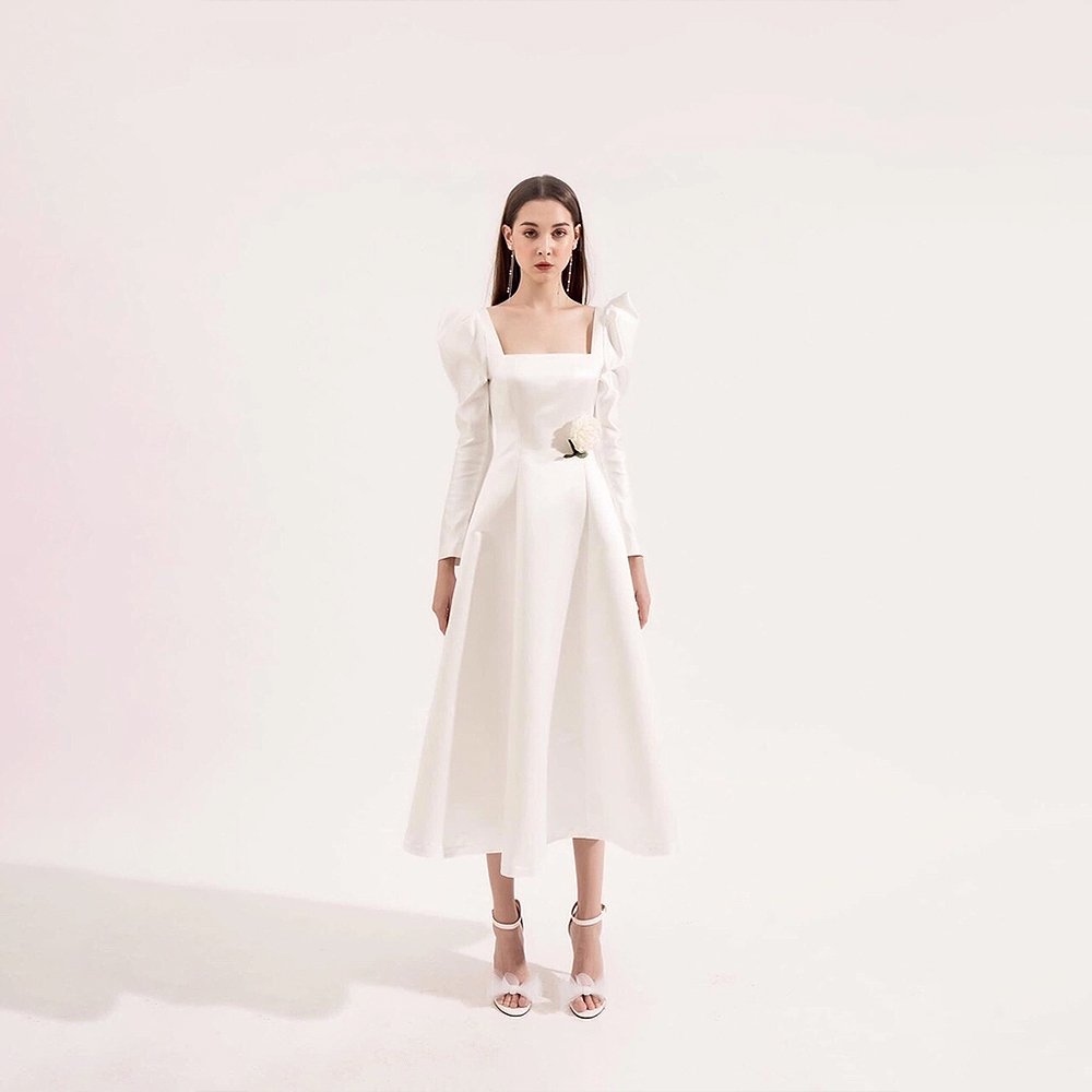 Váy Dài Tay Dài Basic THE NELLA Trắng là một thiết kế đơn giản và thanh lịch của nhà THE NELLA dành cho cô dâu. Với phần tay dài và kiểu dáng basic, chiếc váy này mang lại vẻ đẹp tinh tế và trang nhã. Chất liệu vải trắng tinh khôi giúp tôn lên nét đẹp thuần khiết của cô dâu trong ngày trọng đại. Thiết kế này phù hợp với nhiều phong cách và không gian tiệc cưới khác nhau.