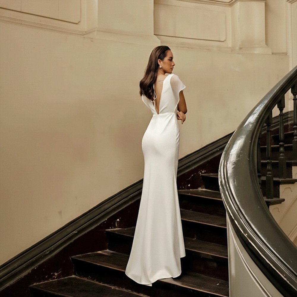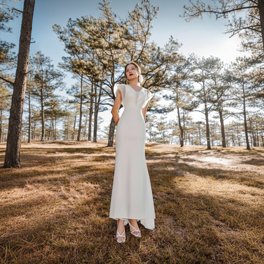 Cho Thuê Váy Dài Thân Voan Đuôi Cá THE NELLA Trắng – Sang Trọng, Quyến Rũ