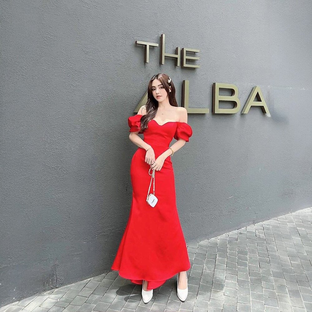 Cho Thuê Váy Dài Trễ Vai Basic THE NELLA Đỏ – Quyến Rũ & Thanh Lịch