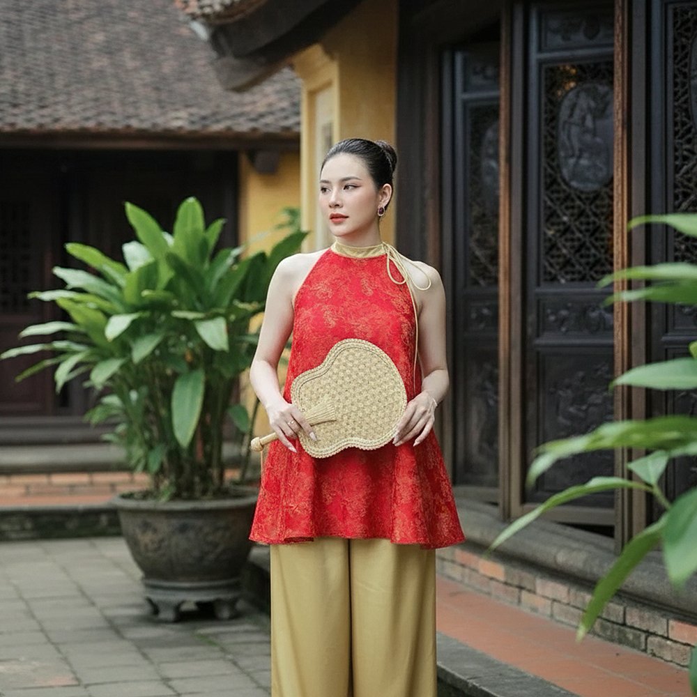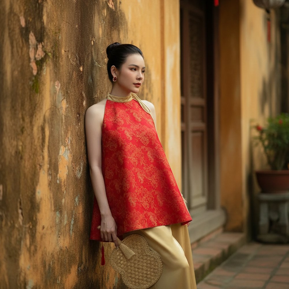 Yếm Lụa Viền Vàng Đỏ là một trang phục truyền thống mang đậm nét đẹp văn hóa Việt Nam. Màu đỏ rực rỡ tượng trưng cho sự may mắn, thịnh vượng, kết hợp cùng viền vàng óng ánh, tạo nên sự sang trọng, quý phái. Chất liệu lụa mềm mại, óng ả, tôn lên vẻ đẹp dịu dàng, quyến rũ của người phụ nữ. Yếm lụa đỏ viền vàng thường được mặc trong các dịp lễ hội, biểu diễn nghệ thuật, hoặc đơn giản là để thể hiện nét đẹp truyền thống của người phụ nữ Việt Nam.
