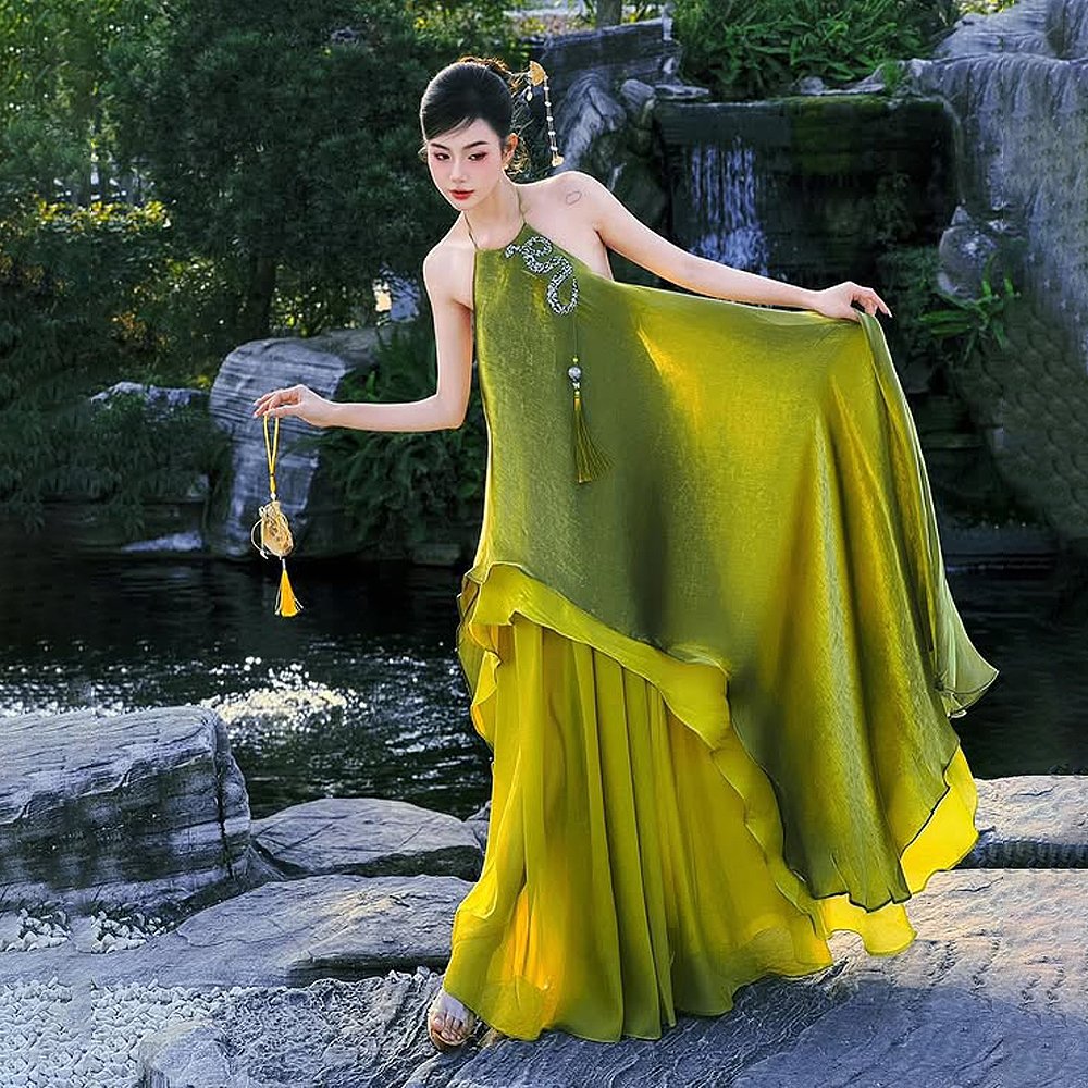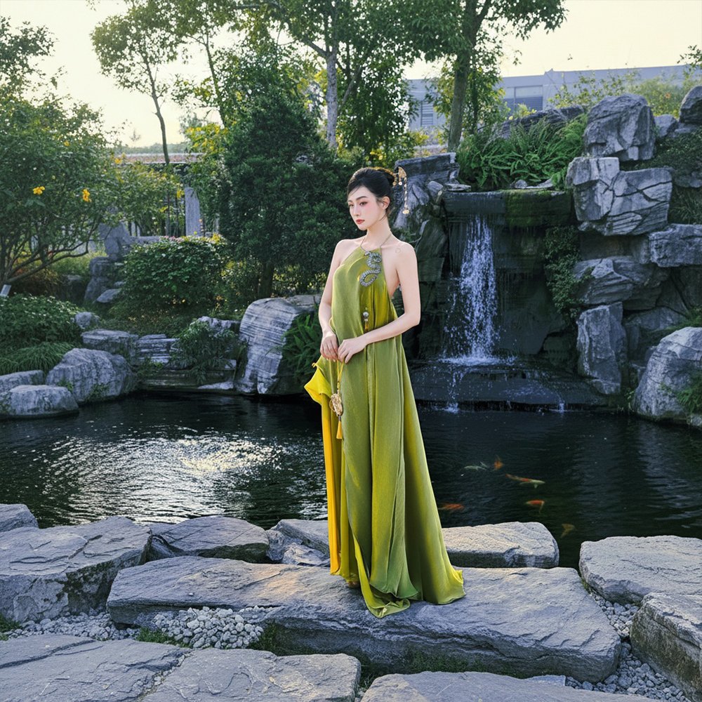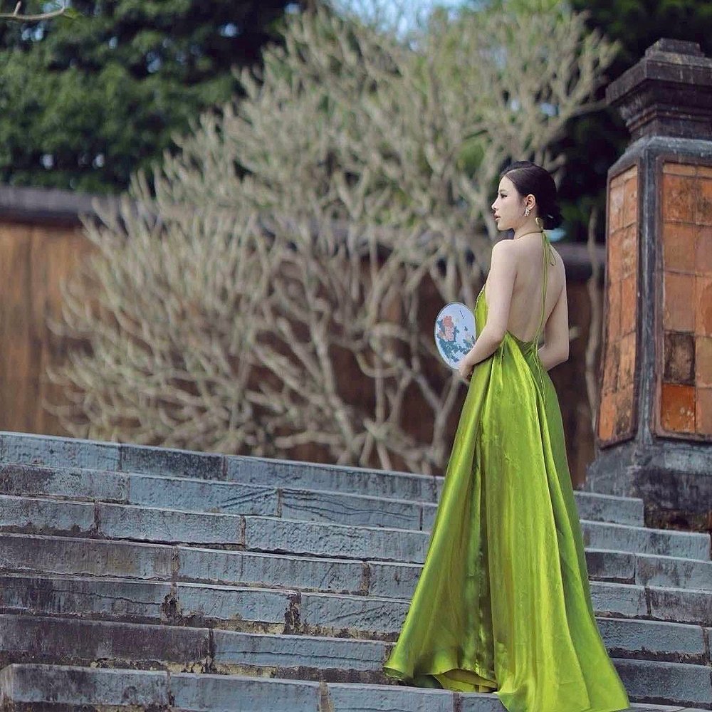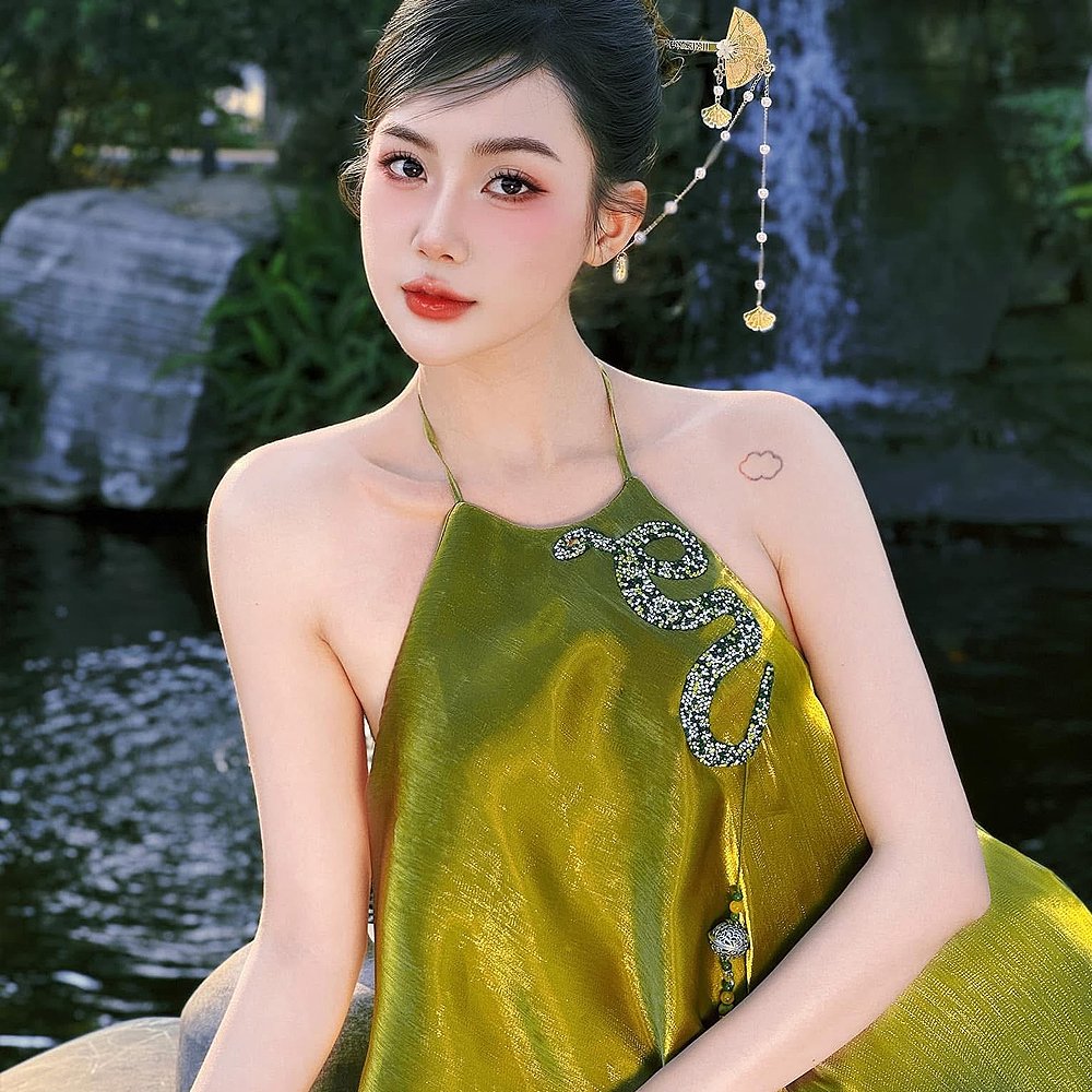 Yếm Xanh Bơ gây ấn tượng với gam màu xanh nhạt tươi mát, trẻ trung nhưng vẫn giữ được nét duyên dáng, thanh lịch của trang phục truyền thống. Thiết kế tối giản nhưng tinh tế, dễ dàng kết hợp cùng váy đụp hoặc các phụ kiện như khăn vấn, áo khoác voan để tạo nên một tổng thể trang phục nổi bật.