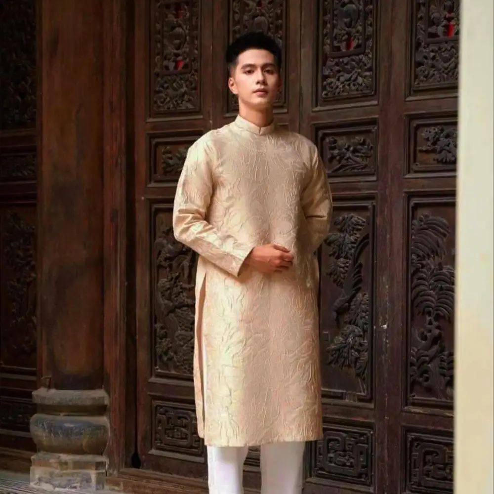 Áo dài gấm nam vàng vân nổi là lựa chọn hoàn hảo dành cho các quý ông yêu thích phong cách trang trọng, lịch lãm nhưng vẫn toát lên sự nổi bật trong các dịp quan trọng. Với chất liệu gấm cao cấp, sắc vàng sang trọng kết hợp hoa văn nổi tinh xảo, mẫu áo dài này mang đến khí chất uy nghi, phù hợp cho: