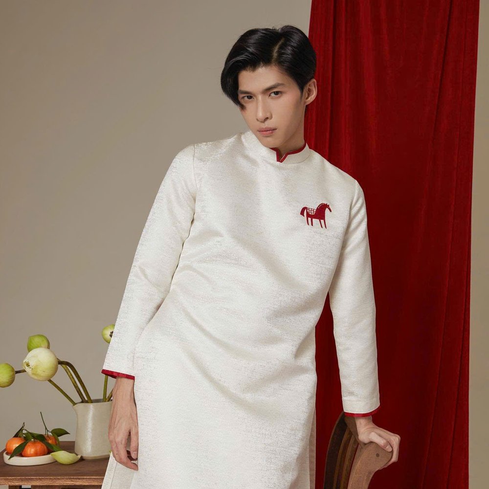 Áo Dài Nam Dizai Kem lịch lãm, form cách tân hiện đại, sử dụng Vải Tafta cứng giúp áo đứng dáng tuyệt đối. Điểm nhấn là Họa Tiết Con Ngựa độc đáo, tượng trưng cho sự thành công, tốc độ và may mắn. Màu Kem trang nhã, lý tưởng cho chú rể, sự kiện đặc biệt và chụp ảnh nghệ thuật. Áo có size L tiêu chuẩn.