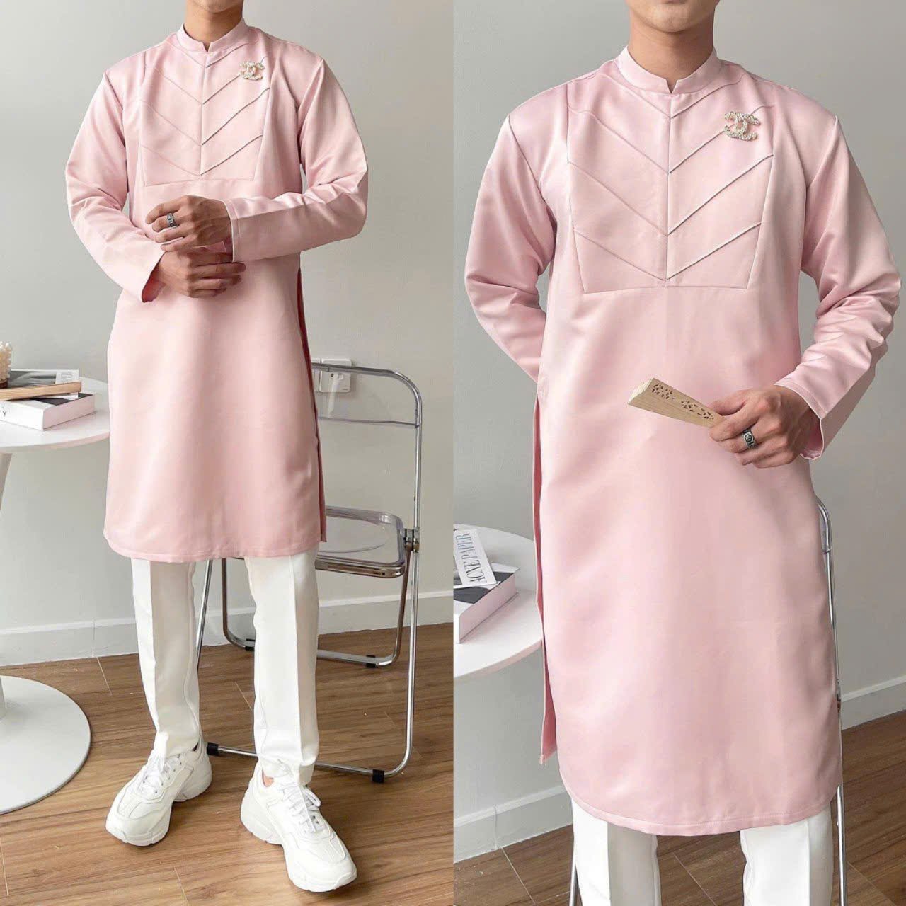 Thuê Áo Dài Nam Hồng Cách Tân Họa Tiết – Lịch Lãm, Trẻ Trung