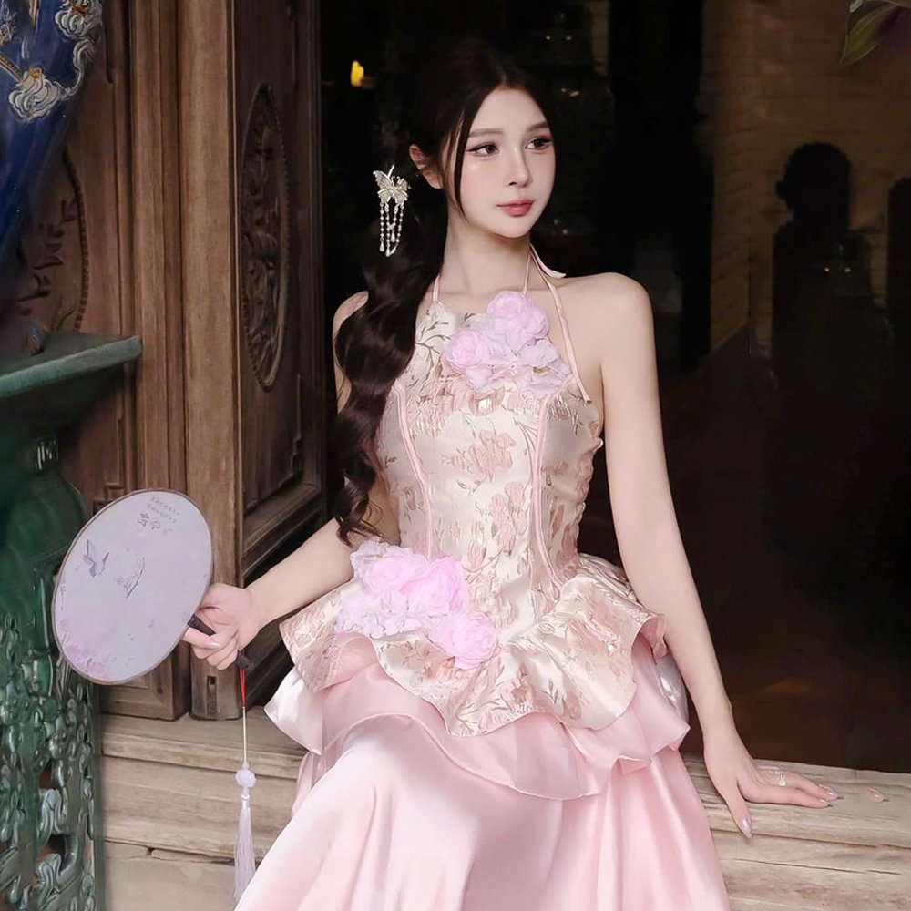 Set Yếm Hoa Chân Váy Lụa N.E.P Hồng mang đến nét đẹp duyên dáng, thanh thoát và đầy nữ tính. Thiết kế yếm cổ điển kết hợp hiện đại, ôm dáng nhẹ nhàng, điểm xuyết hoa nổi 3D tinh tế ở phần ngực và eo tạo điểm nhấn mềm mại.